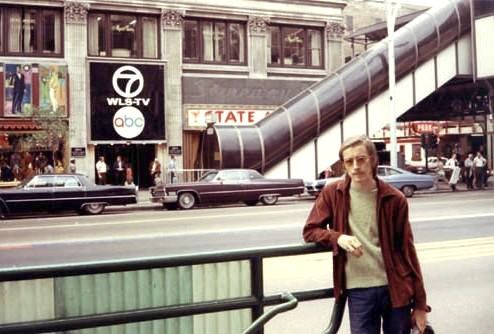 My brother bought a camera in 1969 and took a series of photos of me in Downtown Chicago. Here, I’m holding a bag with a shirt that I bough in the Mod shop that's to the left of ABC, Channel 7 and WLS Radio behind me on the photo.