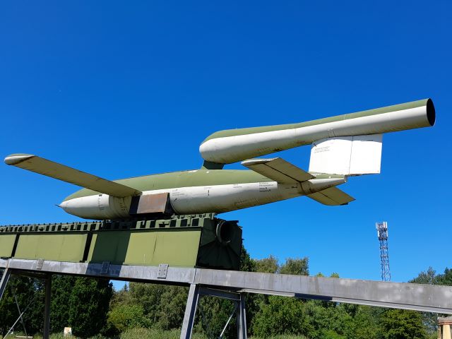 The V1 rocket on its horizontal starting track at the Peenemunde Museum